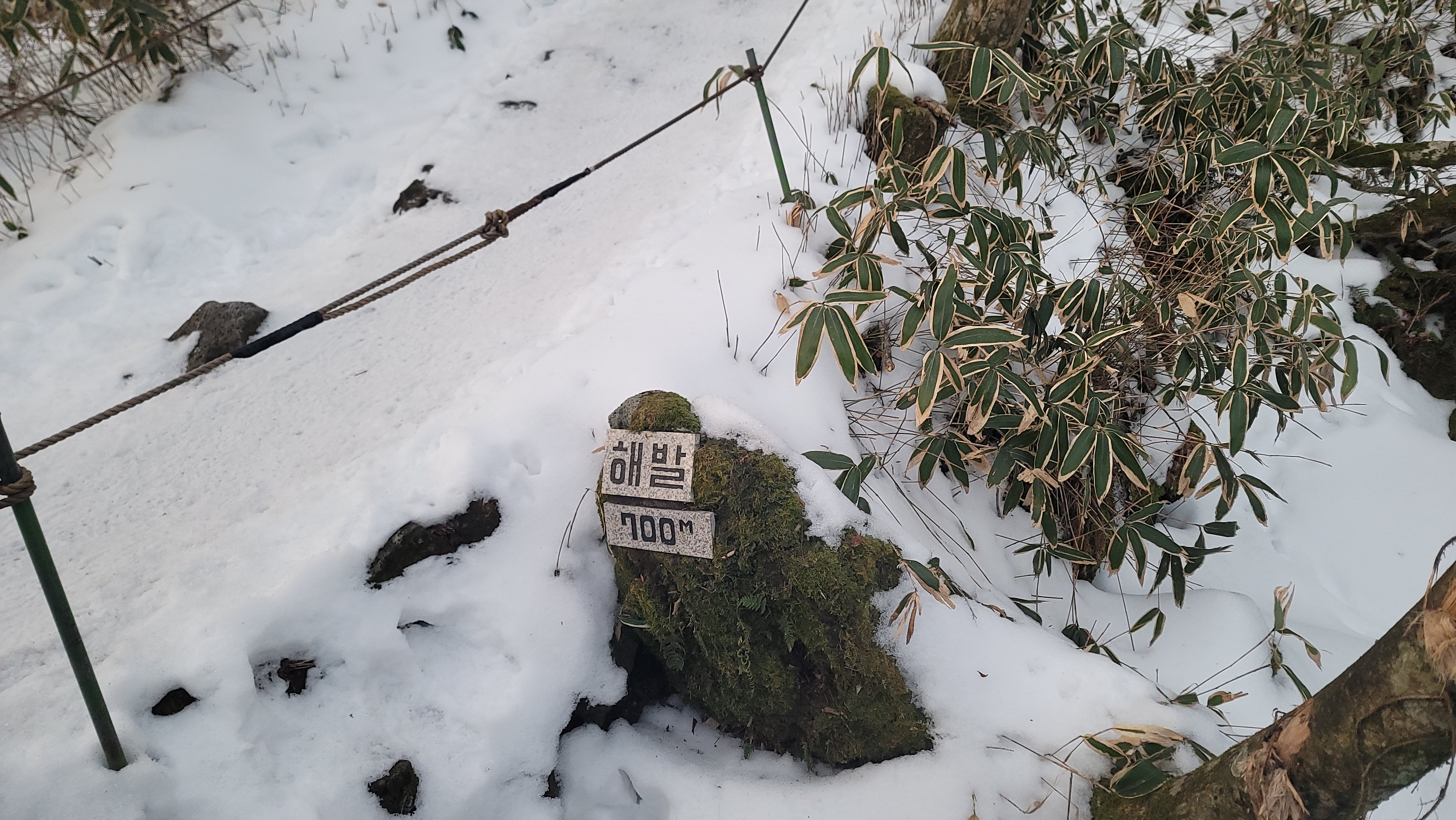 날은 금방 밝았습니다. 조금 걷다 보니 해발 700m네요. 고도를 1,250m를 높여야 합니다. 역시 한라산입니다. 능선을 걷는 느낌처럼 경사도는 완만합니다.