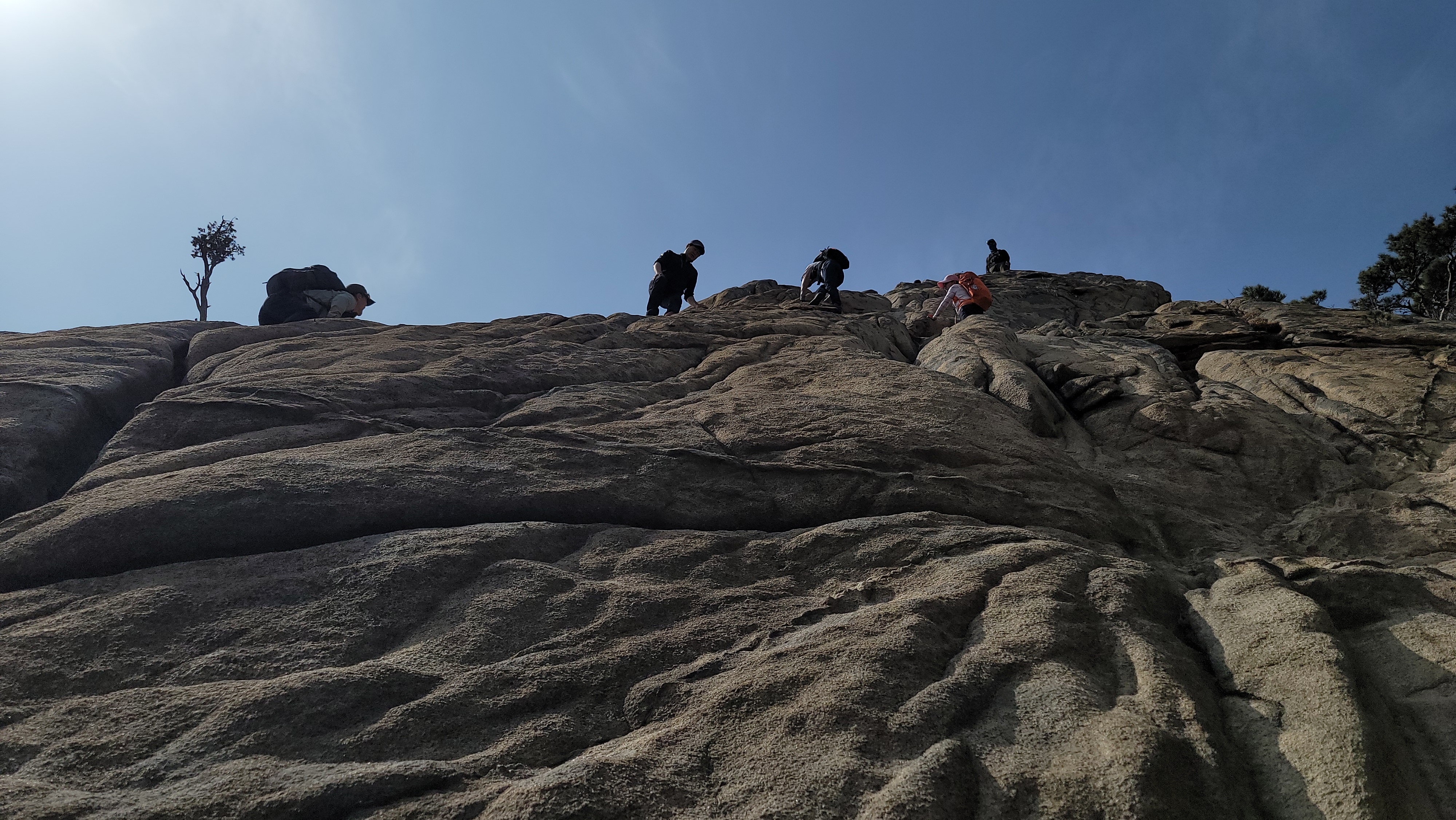 반대편 5봉에 올라서 보는 뾰족한 4봉이 아찔하게 보입니다. 자일을 준비해서 안전하게 내려오는 사람들도 있습니다.